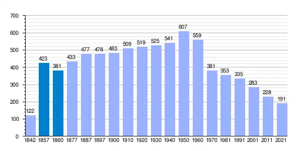 Población de derecho según los censos de población del INE. Población de hecho según los censos de población del INE.Entre el Censo de 1857 y el anterior, crece el término del municipio porque incorpora a 375048 (Villanueva de Pavones).[7] |