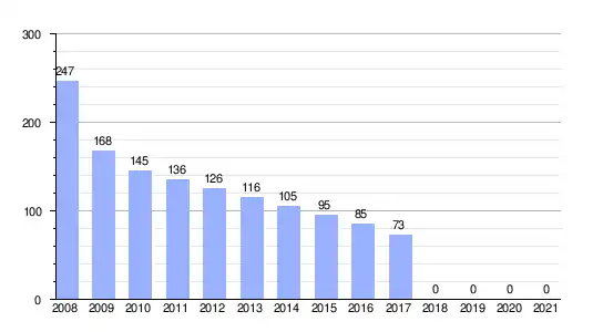 | Gráfica de evolución de la deuda viva del Ayuntamiento de La Peza entre 2008 y 2021 |