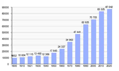 Según los datos registrados en el censo de 2020, la localidad cuenta con 87 042 habitantes lo que representa un crecimiento promedio de 0.45 % anual en el período 2010-2020 sobre la base de los 83 325 habitantes registrados en el censo anterior. Ocupa una superficie de 23.06 km², lo que determina al año 2020 una densidad de 3775 hab/km².[1]