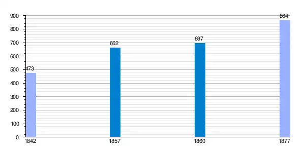 | Gráfica de evolución demográfica de La Redondela[3] entre 1842 y 1877 |