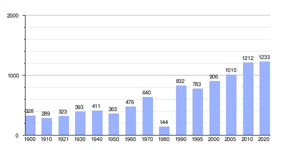 En 2020 registró una población de 1233 personas, lo que corresponde al 3.95 % de la población municipal;[1][7] de los cuales 632 son hombres y 601 son mujeres.[1][7]