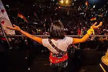 El 12 de noviembre interpretó la canción acompañada de un ukulele en un cabildo, luego de la renuncia de Evo Morales frente a cientos miles de personas que se apostaron a los cuatro lados del Monumento Cristo Redentor en Santa Cruz de la Sierra.