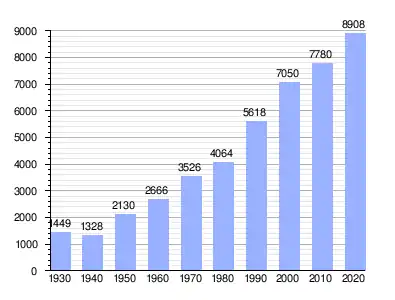 | Gráfica de evolución demográfica de La Ribera entre 1930 y 2020 |