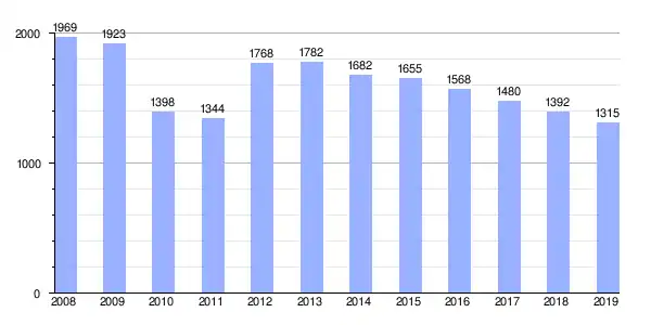 | Gráfica de evolución de Deuda viva del Ayuntamiento de La Taha entre 2008 y 2019 |
