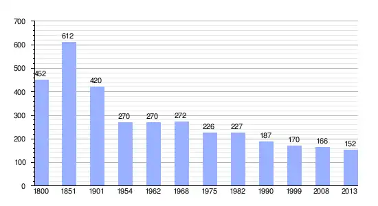 Los datos demográficos contemplados en este gráfico de la comuna de La Terrisse[4] se han cogido de 1800 a 1999 de la página francesa EHESS/Casini y los demás datos, de la página del INSEE.[5]