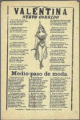 La Valentina es un corrido mexicano, típico y uno de los más famosos del periodo de la revolución mexicana. Su autor es desconocido y también su fecha exacta de composición, aunque se estima como probable que su autor haya pertenecido al contingente revolucionario de los seguidores de Gabriel Leyva y que haya sido compuesta alrededor de 1914 o 1915,[nota 1] siendo su título y letra un homenaje a la revolucionaria Valentina Ramírez.[1][2]
