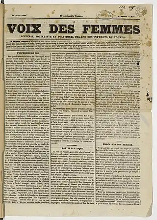 La Voix des Femmes (en español: La Voz de las Mujeres) fue un periódico feminista editado en París y posteriormente fue también el nombre de una organización dedicada a la educación y a la emancipación de la mujer.