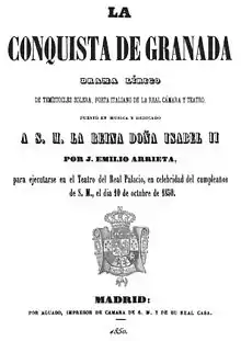 La conquista de Granada (en italiano, La conquista di Granata) es una ópera en tres actos con música de Emilio Arrieta y libreto en italiano de Temistocle Solera. Se estrenó en Madrid el 10 de octubre de 1850, en el Teatro del Real Palacio.