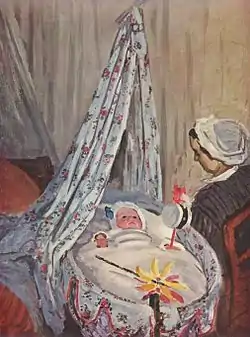 Con respecto al título, La cuna, al compararlo con el de otros cuadros que representaban también a niños durmiendo que fueron presentados en el Salón oficial, afirma Dominique Lobstein que «antes de contribuir quizás a una revolución estética, este cuadro participa de una evolución retórica: Morisot abandona todo pintoresquismo anecdótico y los títulos cobran una simplicidad de buen gusto, destinada a informar inmediatamente al espectador del contenido de la obra y permitirle proyectarse como en su propia cotidianeidad».[3]