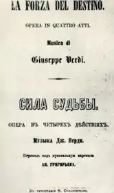 La fuerza del destino (título original en italiano, La forza del destino) es una ópera en cuatro actos con música de Giuseppe Verdi y libreto en italiano de Francesco Maria Piave, basado en la obra teatral Don Álvaro o la fuerza del sino (1835) del escritor español Ángel de Saavedra, duque de Rivas, con una escena adaptada de Wallensteins Lager de Friedrich Schiller. Fue representada por vez primera en el Teatro Bolshói Kámenny (luego Teatro Mariinski) de San Petersburgo, Rusia, el 10 de noviembre (fecha antigua; es el 22 de noviembre) de 1862. Verdi sentía inclinación por los temas españoles.