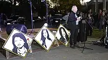 Placa recordatoria en homenaje al asesinato (de izquierda a derecha: Laura Raggio, Diana Maidanik y Silvia Reyes).