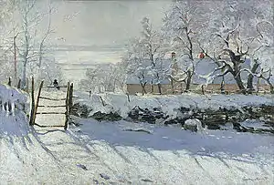 Entre 1867 y 1893, Monet y sus colegas impresionistas Alfred Sisley y Camille Pissarro pintaron cientos de paisajes que ilustran el efecto natural de la nieve (effet de neige). Pinturas de invierno similares de menor cantidad fueron producidas por Pierre-Auguste Renoir, Gustave Caillebotte y Paul Gauguin. Los historiadores de arte creen que una serie de inviernos severos en Francia contribuyó a un aumento en el número de paisajes invernales producidos por los impresionistas.[2]