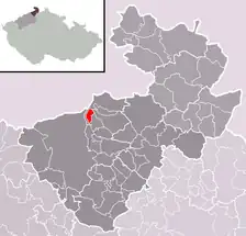 Se encuentra ubicada al noreste de la región, en la ladera sur de los montes Metálicos, cerca del río Elba, de la región de Liberec y del estado alemán de Sajonia.[1]