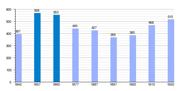| Gráfica de evolución demográfica de Lacozmonte[2] entre 1842 y 1920 |