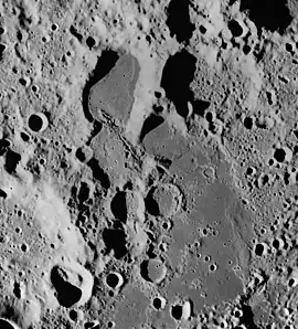 Posee una silueta arqueada, con el lado cóncavo orientado al noroeste. El borde oriental es relativamente continuo, mientras que el del oeste es más irregular, interrumpido por pequeños cráteres.