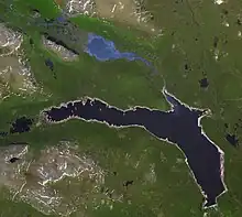 Es alimentado por el río Rapaätno, que forma un vasto delta al desembocar en él. El lago tiene un área de 9,89 km²[1] y una longitud de aproximadamente 15 km.[2] El lago es un sitio Ramsar desde 1974.[3]