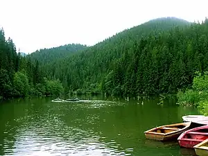 El lago Rojo (en rumano: Lacul Roșu) es un espectacular y hermoso lago montañés que se encuentra a 26 kilómetros de la localidad de Gheorgheni, Judeţ[1] de Harghita, Rumanía.