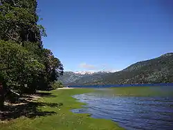 En el valle que le da acceso al lago, se encuentran varias comunidades mapuches.