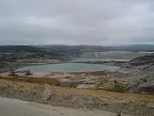La historia del lago empieza con la explotación de la mina a cielo abierto de la que se extraía lignito para abastecer a la central térmica. Los trabajos de extracción empezaron en el año 1976. Durante el periodo en que estuvo en explotación se extrajeron más de 261 millones de toneladas de lignito y más de 697 millones de m³ de tierra, convirtiéndose en la mina a cielo abierto más grande de la península ibérica. La actividad de esta mina llevó consigo la creación de dos escombreras para depositar toda la tierra extraída así como un gran hueco central, de 288 metros de profundidad, provocado por la extracción de la tierra y del lignito. Tras 31 años de operación se decidió clausurar la mina, el 31 de diciembre de 2007.