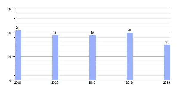 | Gráfica de evolución demográfica de Lagoa entre 2000 y 2019 |