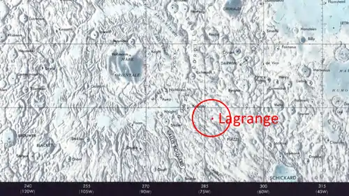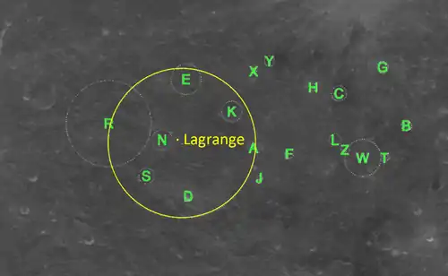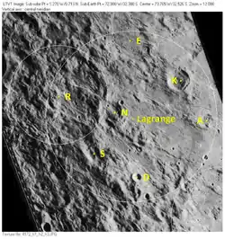![]() Cráter Lagrange (Detalle de la cartografía tomada por la misión espacial Lunar Orbiter 4 en 1967) | ||