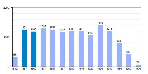 | Gráfica de evolución demográfica de Laguarta[2] entre 1842 y 1970 |