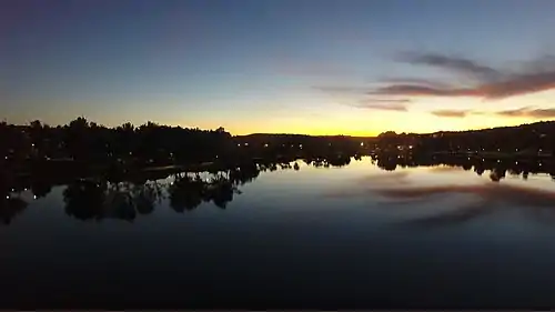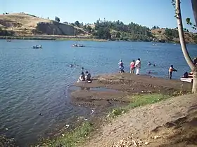 ![]() Turistas bañándose y practicando deportes náuticos en el lago "Laguna La Señoraza". | ||