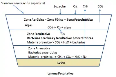 En el tratamiento de las aguas servidas, se llaman lagunas facultativas a las lagunas que operan, en su estrato superior como lagunas aeróbicas, en su estrato inferior como lagunas anaerobias, y en el estrato intermedio, con la presencia de bacterias facultativas se crea un estrato particular llamada zona facultativa.