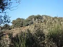 • Bosque y matorral mediterráneo, con especies características como encina, coscoja, tojo, jaras, matagallo y espino albar. El encinar está bastante clareado en algunas zonas y en su mayoría crece achaparrado. La zona que se mantiene en mejores condiciones es la que está situada entre ambas lagunas y alrededor de la Chica.