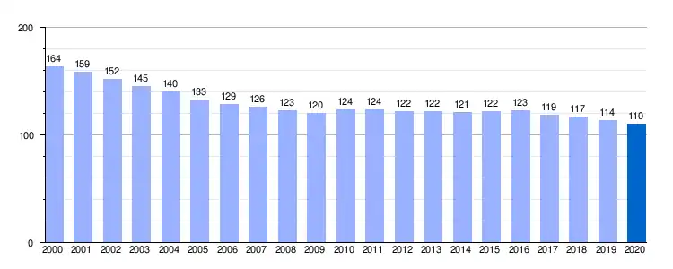 | Gráfica de evolución demográfica de Lagunilla de la Vega entre 2000 y 2020 |