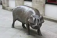 - En bronce, situada en la confluencia de las calles Principal y Matemático Rodríguez, es obra (1999) de Juan Oliveira (1928-2002).