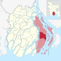 Se encuentra ubicado en el centro-sur del país, junto a la costa del golfo de Bengala y la desembocadura del río Brahmaputra.