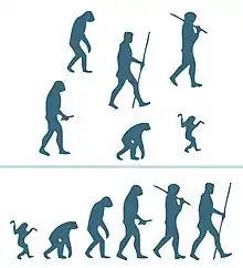 Aplicando la metodología de Lamarck, descubiertos diferentes restos de nuestros ancestros, si los ordenamos atendiendo a la «escala gradual» por él postulada, debería, como así ocurre, proporcionarnos el orden en el que han evolucionado, reconociéndose en ellos sus «conexiones».[25] (Representación esquemática ideal).