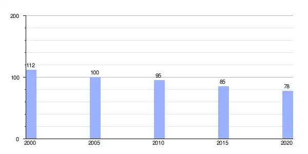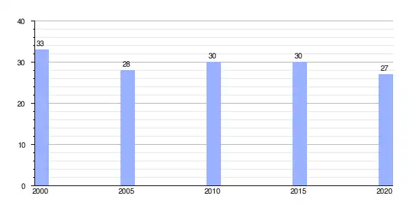 | Gráfica de evolución demográfica de Lamela (parroquia) entre 2000 y 2020 |