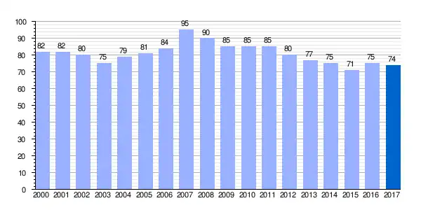 | Gráfica de evolución demográfica de Real Valle de Laminoria[5] entre 2000 y 2017 |