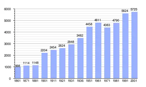 | Gráfica de evolución demográfica de Lampedusa e Linosa entre 1861 y 2001 |