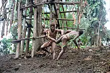 La construcción de la torre suele tardar entre 2 y 5 semanas.[2] Alrededor de 20 a 30 hombres ayudan a construirlo.[4] Los hombres cortan árboles para construir el cuerpo, limpian un sitio para la torre y quitan rocas del suelo.[4] La tierra se labra para ablandar la tierra.[2] La madera está recién cortada, para que se mantenga fuerte.[3] El núcleo de la torre está hecho de un árbol cortado y un andamio de postes atados con enredaderas que lo estabilizan.[8] Del frente de la torre salen varias plataformas a unos 2 metros, sostenidas por varios puntales.[8] La plataforma más baja mide alrededor de 10 metros y la plataforma más alta está cerca de la cima.[8] Durante el salto, los soportes de la plataforma se rompen, lo que hace que la plataforma se incline hacia abajo y absorba parte de la fuerza de la caída.[8]