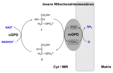 - Shen W, Wei Y, Dauk M, et al. (2006). «Involvement of a glycerol-3-phosphate dehydrogenase in modulating the NADH/NAD+ ratio provides evidence of a mitochondrial glycerol-3-phosphate shuttle in Arabidopsis». Plant Cell 18 (2): 422-41. PMC 1356549. PMID 16415206. doi:10.1105/tpc.105.039750.
