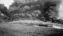 - Fotografía blanco y negro de un disparo de prueba del lanzallamas de túnel Livens. Archivado el 3 de marzo de 2016 en Wayback Machine.