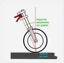 El ángulo de lanzamiento, simplemente lanzamiento o cáster (de la palabra inglesa caster[1]) es el ángulo entre la vertical y el eje de pivotamiento de la(s) rueda(s) con el que se controla la dirección de un automóvil, motocicleta, bicicleta u otro vehículo, medido cuando la(s) ruedas se encuentran en su dirección longitudinal.[2] Es el ángulo entre la línea de pivote (en un auto una línea imaginaria que corre a través del centro de las junta del pivote superior al centro de la junta del pivote inferior) y la vertical. A veces se ajusta el ángulo cáster para optimizar características particulares de manejo.