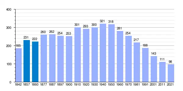 | Gráfica de evolución demográfica de Larraona[3] entre 1842 y 2021 |
