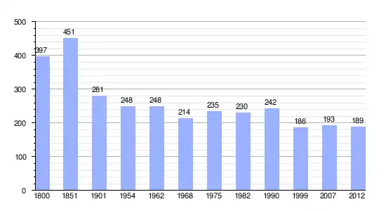 | Gráfica de evolución demográfica de Larribar-Sorhapuru entre 1800 y 2012 |