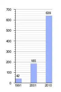 | Gráfica de evolución demográfica de Las Delicias entre 1991 y 2010 |