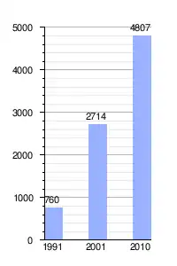 | Gráfica de evolución demográfica de Las Grutas entre 1991 y 2010 |