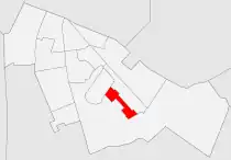 En su mayor parte el barrio queda formado por dos tipos de manzanas. La predominantes son rectangulares y apoyando su lado mayor en calles que siguen la dirección NO-SE. Cada una de esas manzanas están formadas por tres líneas de bloques de cinco crujias, separados entre sí por calles de carácter peatonal. El segundo tipo de manzanas, menos abundante, son prácticamente cuadradas, con tres líneas de bloques que siguen la dirección SO-NE.