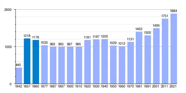 | Gráfica de evolución demográfica de Les Preses[3] entre 1842 y 2021 |
