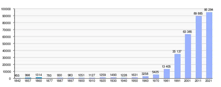 | Gráfica de evolución demográfica de Las Rozas de Madrid[16] entre 1842 y 2021 |