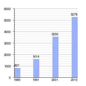| Gráfica de evolución demográfica de Las Toninas entre 1980 y 2010 |