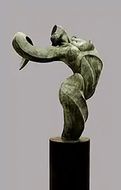 Esta escultura, como el resto de la serie, presenta cortes muy fuertes, con profusión de curvas. El autor desarrolla una escultura vanguardista con elementos que contrastan pero con mucha cohesión y sensibilidad.[13]