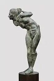 La obra tiene una estructura compositiva cuasi circular, gobernada por la ley gestáltica de cierre. El brazo y la pierna derechos se direccionan para sugerir una forma con un contorno anular de dos caras, que crea un espacio positivo y negativo, dentro y fuera del mismo, que se corresponden con el dorso y torso de la figura, respectivamente.[15]